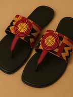 A radiant fusion of heritage and modern fashion. These women’s toe-ring sandals boast a bold Kente print and a handcrafted circular embellishment, bringing vibrant tradition to your steps. Lightweight, breathable, and unmistakably African.